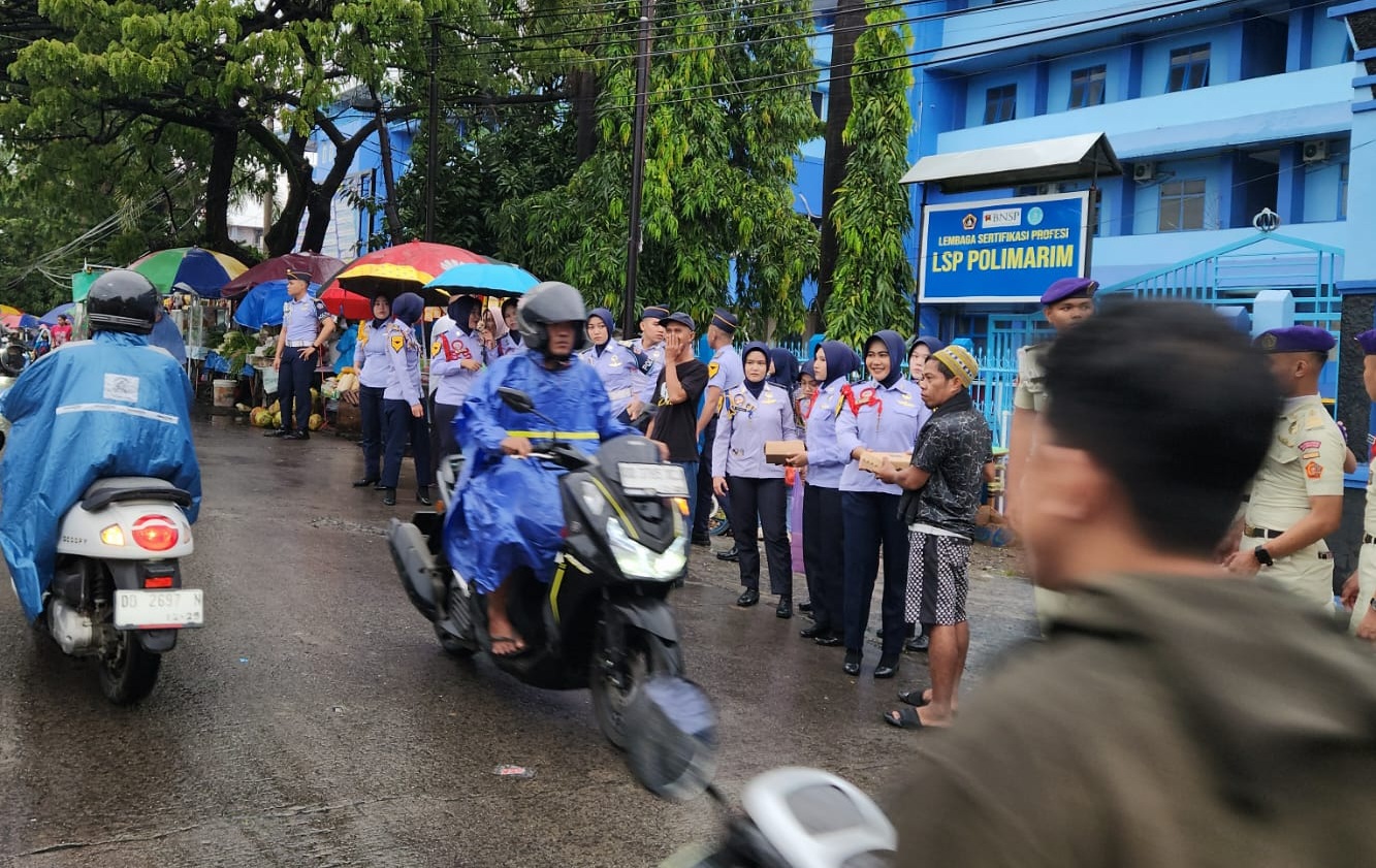 Kegiatan berbagi ini disambut antusias oleh masyarakat. Sejumlah pengendara yang melintas tampak berhenti sejenak untuk menerima takjil yang dibagikan secara gratis oleh para taruna dan pegawai kampus.