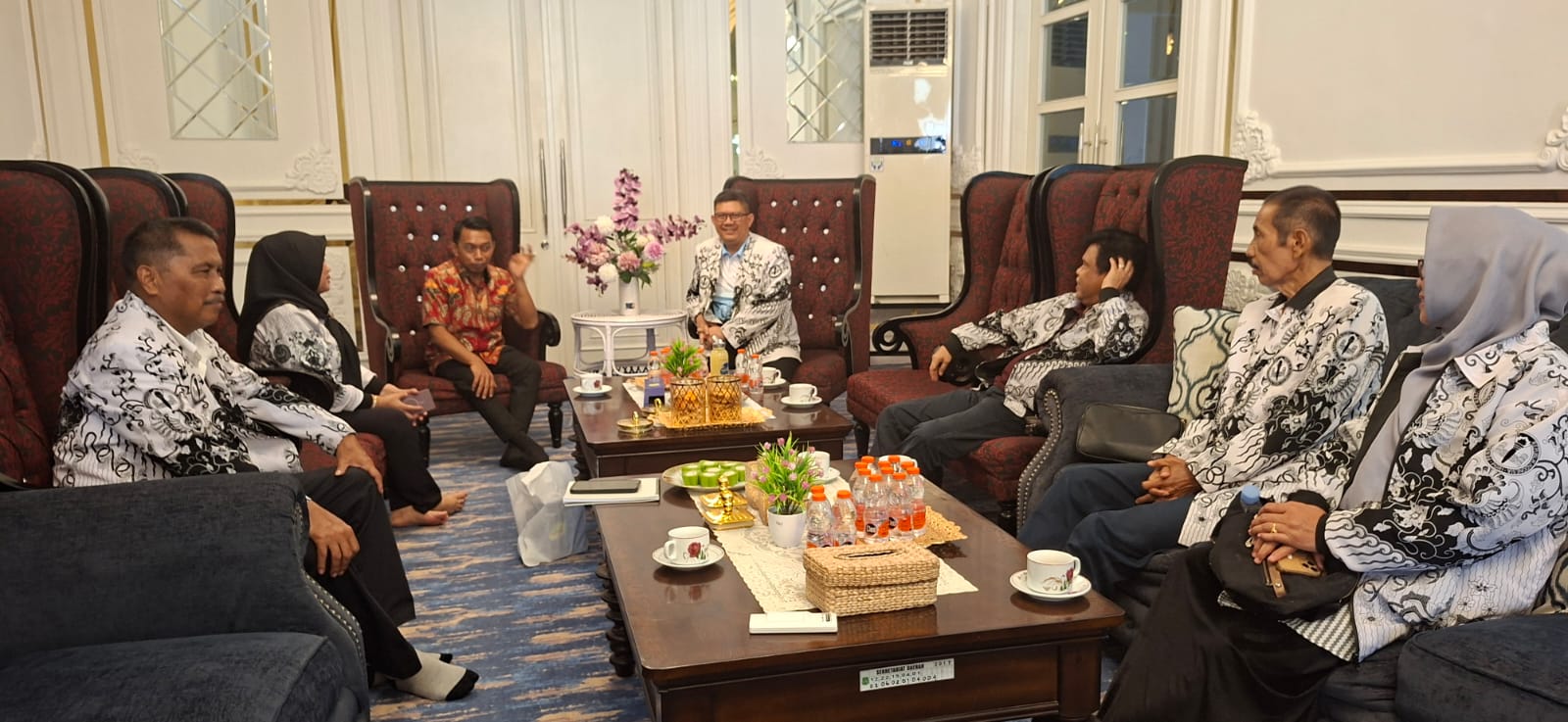 Bupati Sidrap, H. Syaharuddin Alrif, memimpin langsung simulasi persiapan di hadapan Ketua PGRI Sulsel, Prof. Dr. H. Hasnawi Haris, M.Hum, bersama rombongan di Rumah Jabatan Bupati, Kecamatan Maritengngae, Sabtu (4/4/2026) siang.