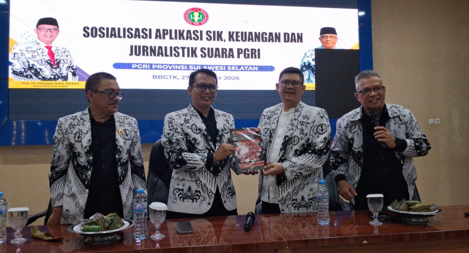BERITASEMBILAN.Com-Makassar. Pengurus PGRI Provinsi Sulawesi Selatan (Sulsel) menggelar sosialisasi Aplikasi Sistem Informasi Keanggotaan (SIK), pengelolaan keuangan, dan jurnalistik Suara PGRI di Balai Besar Guru dan Tenaga Kependidikan (BBGTK) Sulsel, pada Jumat hingga Sabtu (27-28 Maret 2026). Kegiatan ini diikuti oleh 60 peserta dari 24 kabupaten/kota se-Sulsel, meskipun semula menargetkan 72 peserta.
