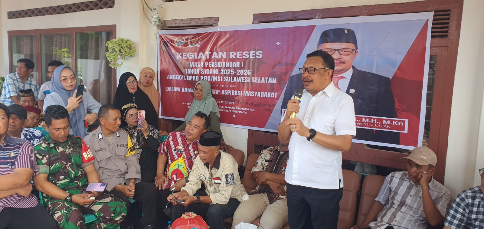 BERITASEMBILAN.Com-Jeneponto. Anggota DPRD Provinsi Sulawesi Selatan dari Fraksi PDI Perjuangan, Dr. H. Alimuddin, SH, MH, MKn, melaksanakan kegiatan reses masa sidang I tahun 2025–2026 di wilayah Daerah Pemilihan (Dapil) IV yang meliputi Kabupaten Jeneponto, Bantaeng, dan Selayar.