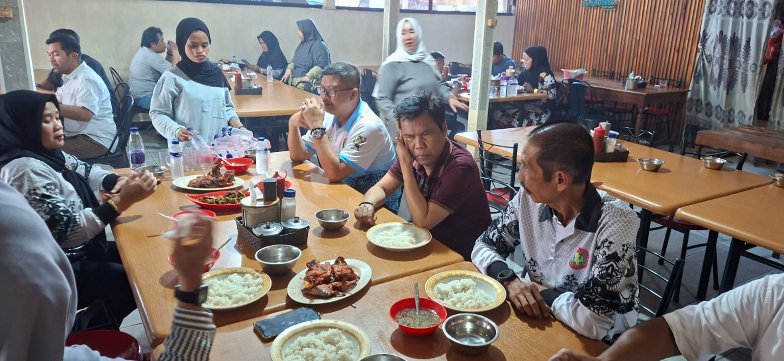Jamuan makan siang berlangsung di Warung Itik H. Dabbo, salah satu kuliner legendaris di Sidrap yang dikenal dengan olahan itik pedasnya.