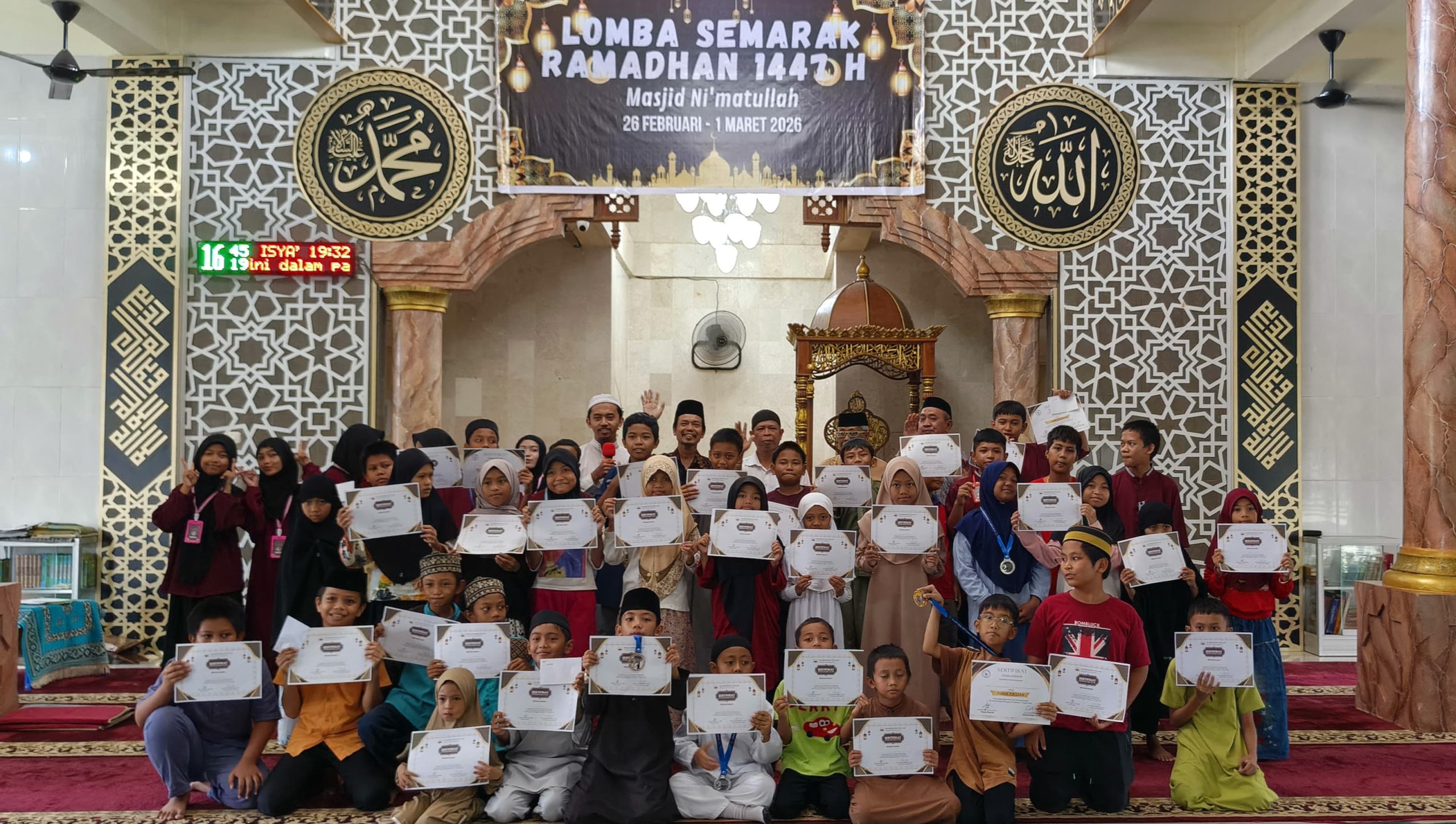 Kegiatan yang dipusatkan di Masjid Ni’matullah itu resmi ditutup pada Ahad (1/3/2026) oleh Ketua Pengurus Masjid Ni’matullah, Dr. Ahdan Sinilele, M.Si.