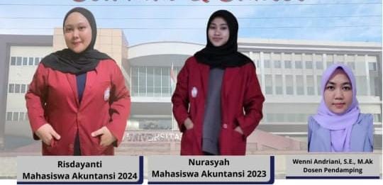 Tim ini diperkuat oleh dua mahasiswa berprestasi, Nurasyah (Akuntansi 2023) dan Risdayanti (Akuntansi 2024), serta didampingi oleh Wenni Andriani, S.E., M.Ak., sebagai dosen pembimbing.
