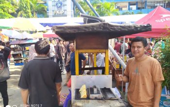 Sesampainya di lokasi, dia segera menata lapak sederhana. Tak ada spanduk besar atau meja megah, hanya meja kecil, tungku pembakaran, dan senyum tulus yang siap menyambut pembeli.