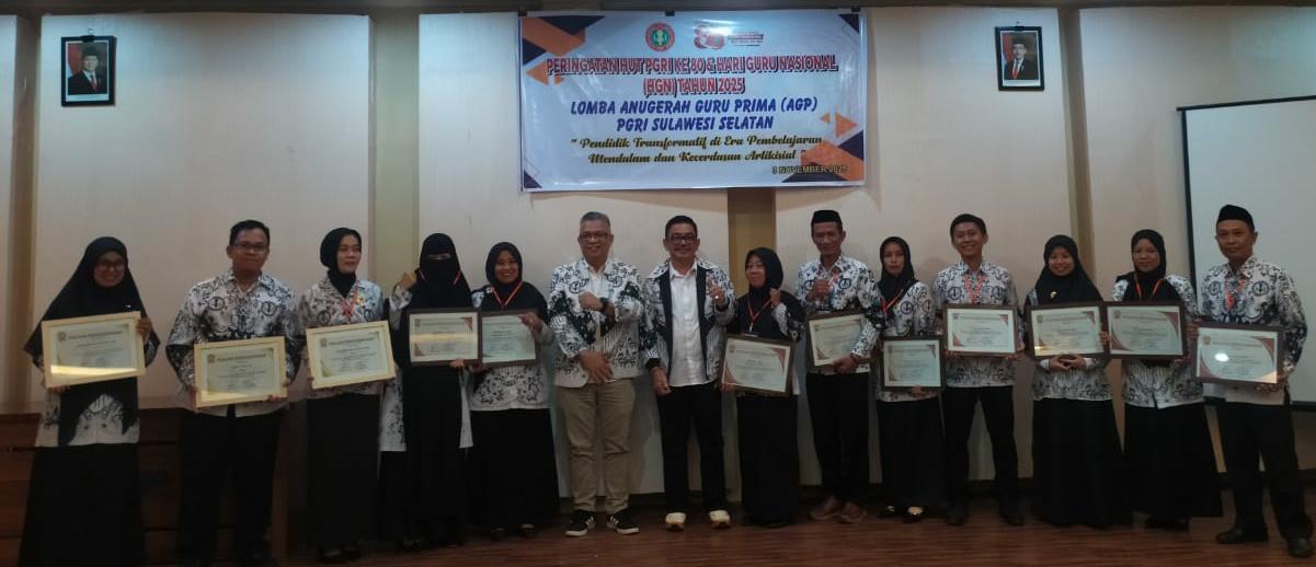 Melalui ajang Anugerah Guru Prima (AGP), PGRI Sulsel berharap dapat memperkuat semangat profesionalisme, menumbuhkan budaya inovasi, serta mengokohkan peran guru sebagai penggerak utama kemajuan pendidikan di Sulawesi Selatan dan Indonesia. ***
