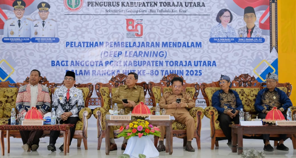 BERITASEMBILAN.Com-Toraja Utara.Memperingati Hari Ulang Tahun ke-80 Persatuan Guru Republik Indonesia (PGRI), Pengurus Kabupaten PGRI Toraja Utara menggelar kegiatan Pelatihan Pembelajaran Mendalam (Deep Learning) pada Senin, 11 November 2025 di Gedung AA Van de Loistre, Rantepao.