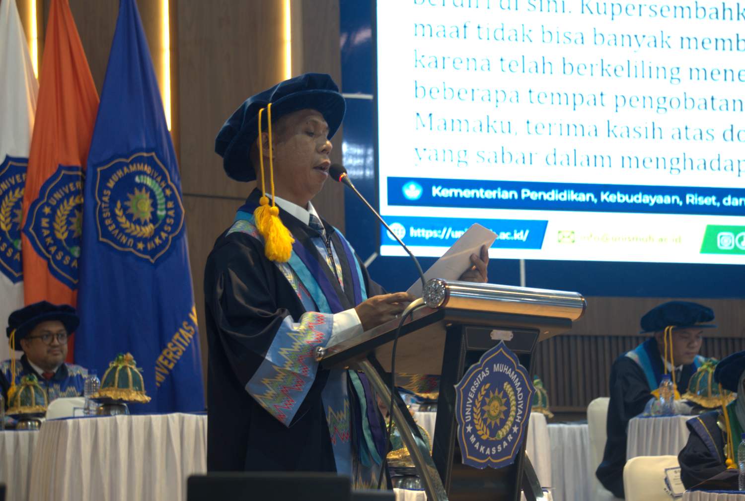 Rektor Unismuh Makassar, Dr. Abdul Rakhim Nanda, menegaskan bahwa gelar profesor bukan sekadar pencapaian pribadi, melainkan tanggung jawab akademik yang besar. “Profesor itu hampir sama dengan kiai. Ada kehormatan sekaligus tanggung jawab besar. Harus menjadi inspirasi bagi dosen muda dan bermanfaat nyata bagi masyarakat,” ujarnya.
