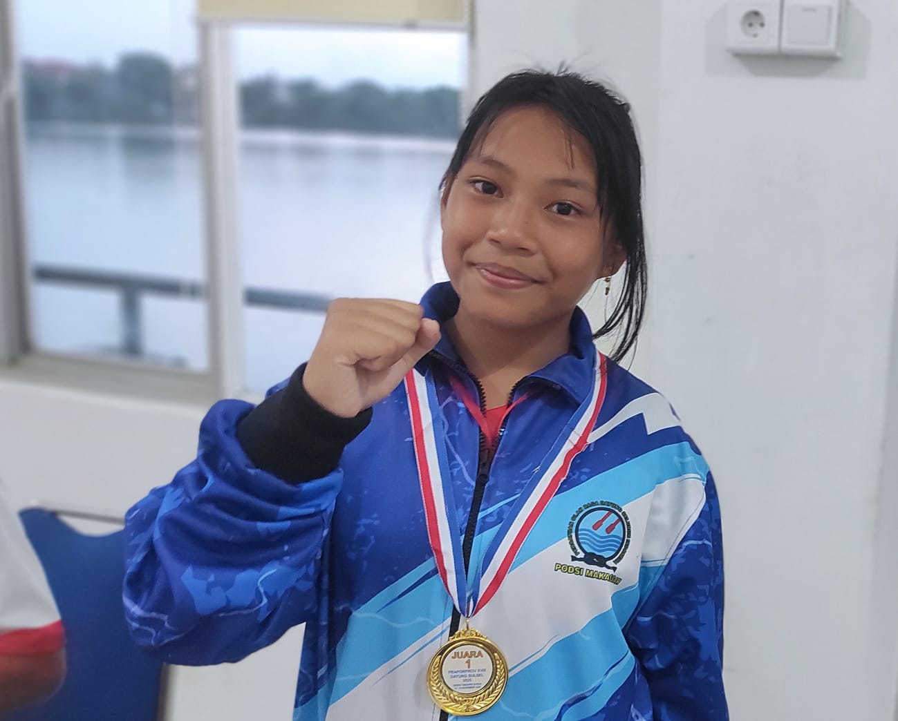 “Baru dua bulan latihan, tapi sudah bisa membawa pulang medali. Kami tentu sangat bangga padanya,” ujarnya.