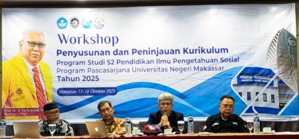 BERITASEMBILAN.Com-Makassar. Program Studi Magister (S2) Pendidikan Ilmu Pengetahuan Sosial (IPS) Pascasarjana Universitas Negeri Makassar (UNM) menyelenggarakan Workshop Penyusunan dan Peninjauan Kurikulum pada 18–19 Oktober 2025 di Hotel Remcy, Makassar.